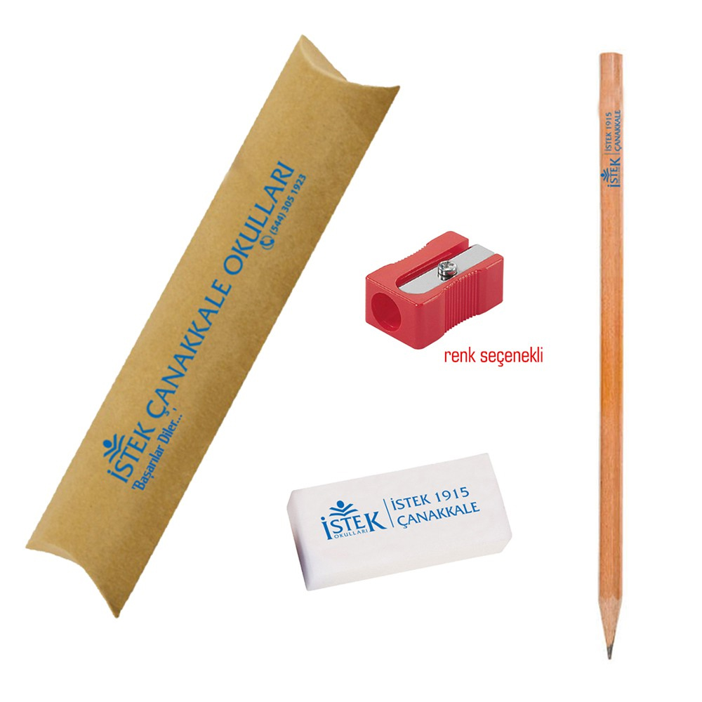 – 1 adet kraft kutu – 1 adet kurşun kalem – 1 adet silgi – 1 adet kalem traş